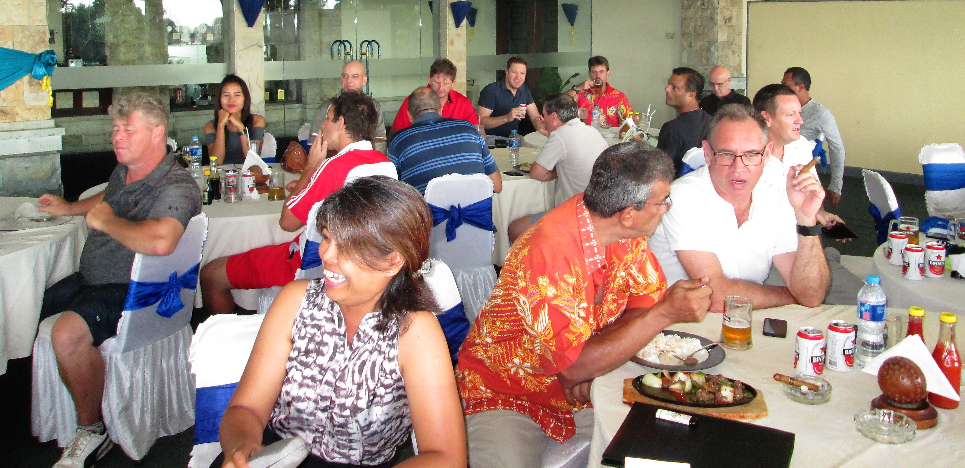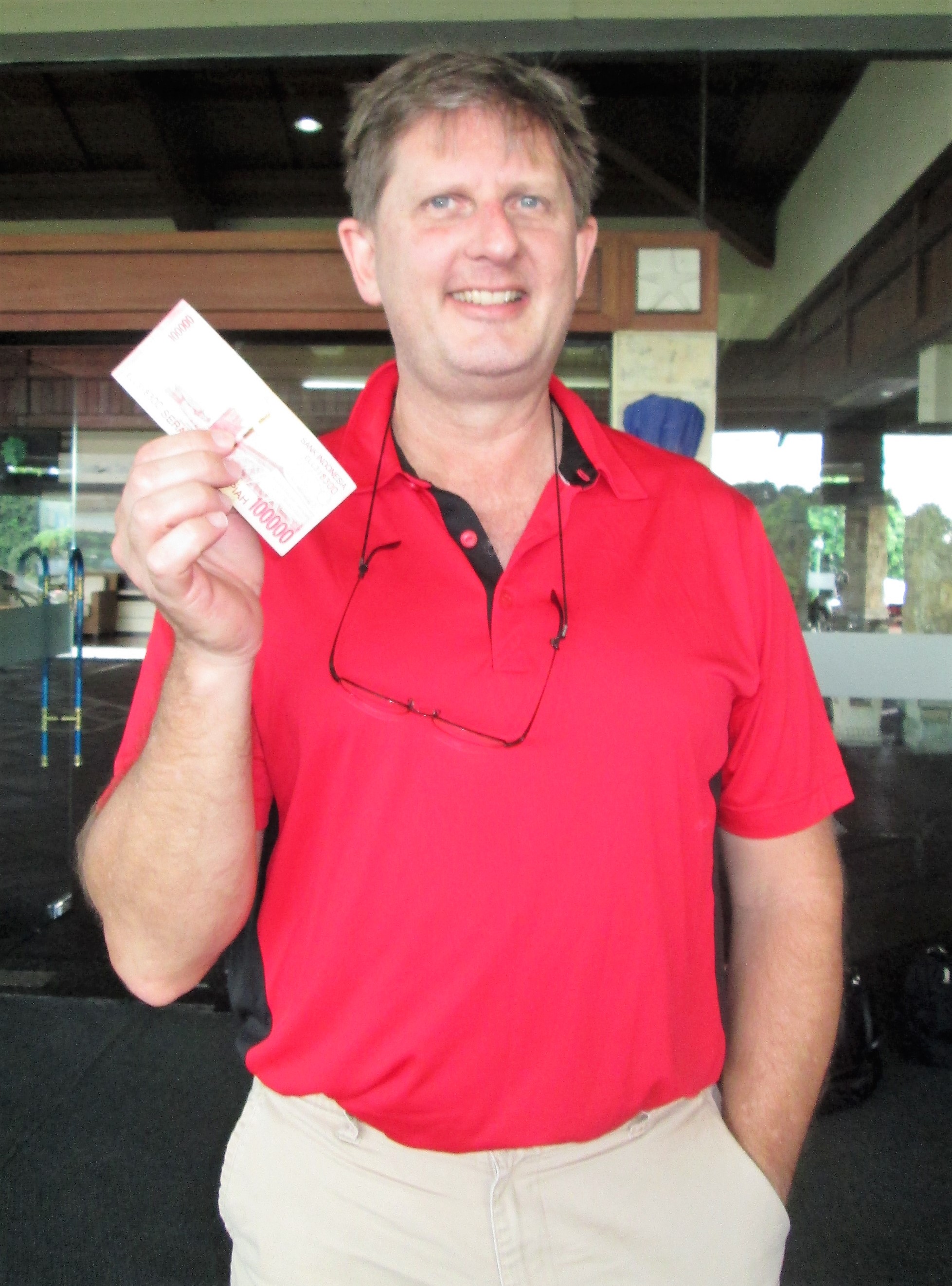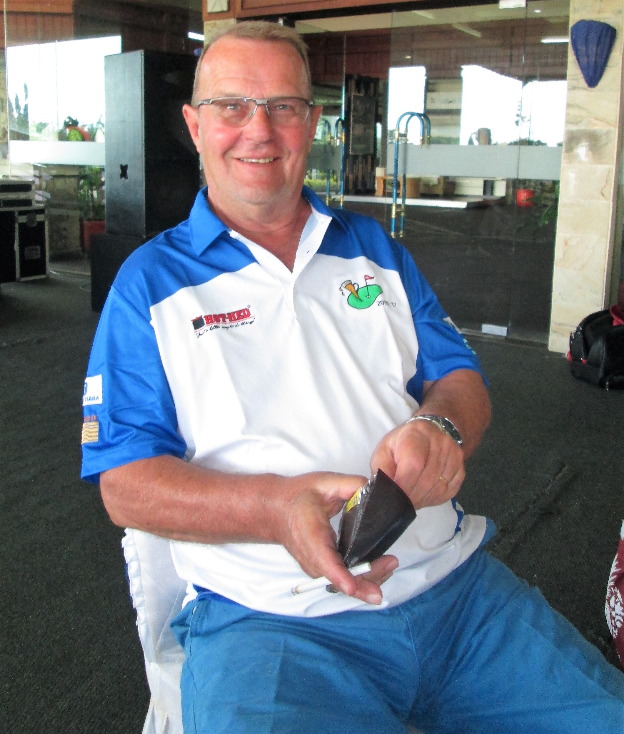 Andrew McDermott played his second and final round with Tee Set with the previous being the 2016 Championship. He was up for a one off trip to replace Peter Ruffy at the Oz Embassy and won’t be returning … so he said, but we all know as history has shown people always come back to Tee Set. Thanks to Billy Lloyd for delivering Andrew the only available spare set of left handed clubs in Jakarta, that had last been spotted in Geoff Thwaites’ car boot.