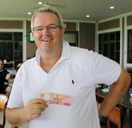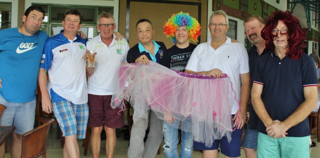 Most Strokes was a popular category with 7 players needing 10 shots on a hole, but due to the one booby prize rule, since 4 of them also got a skirt on the day, and Mick Dodsworth was OB, only 3 paid for it and are pictured here: John Suermondt, Pieter Nielen-Groen and Niclas Roos.