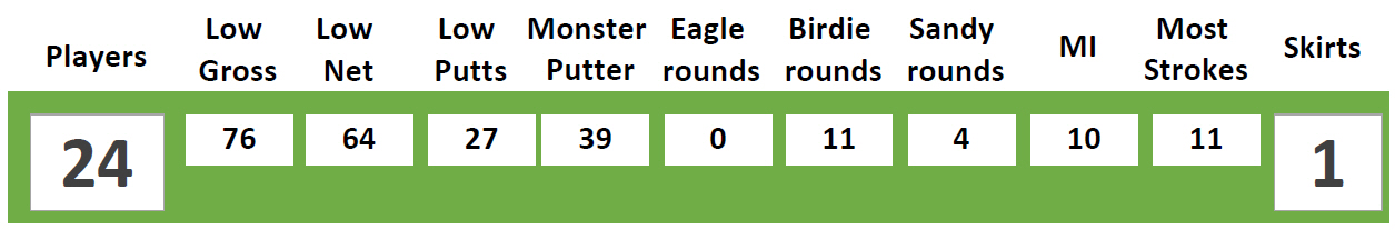 Singing ex-President Craig Ewers and Laurie O’Connor both won First Birdie on their 4th hole, where in case you wonder Laurie didn’t need his putter on the hole as his approach was so close it was deemed a give me.