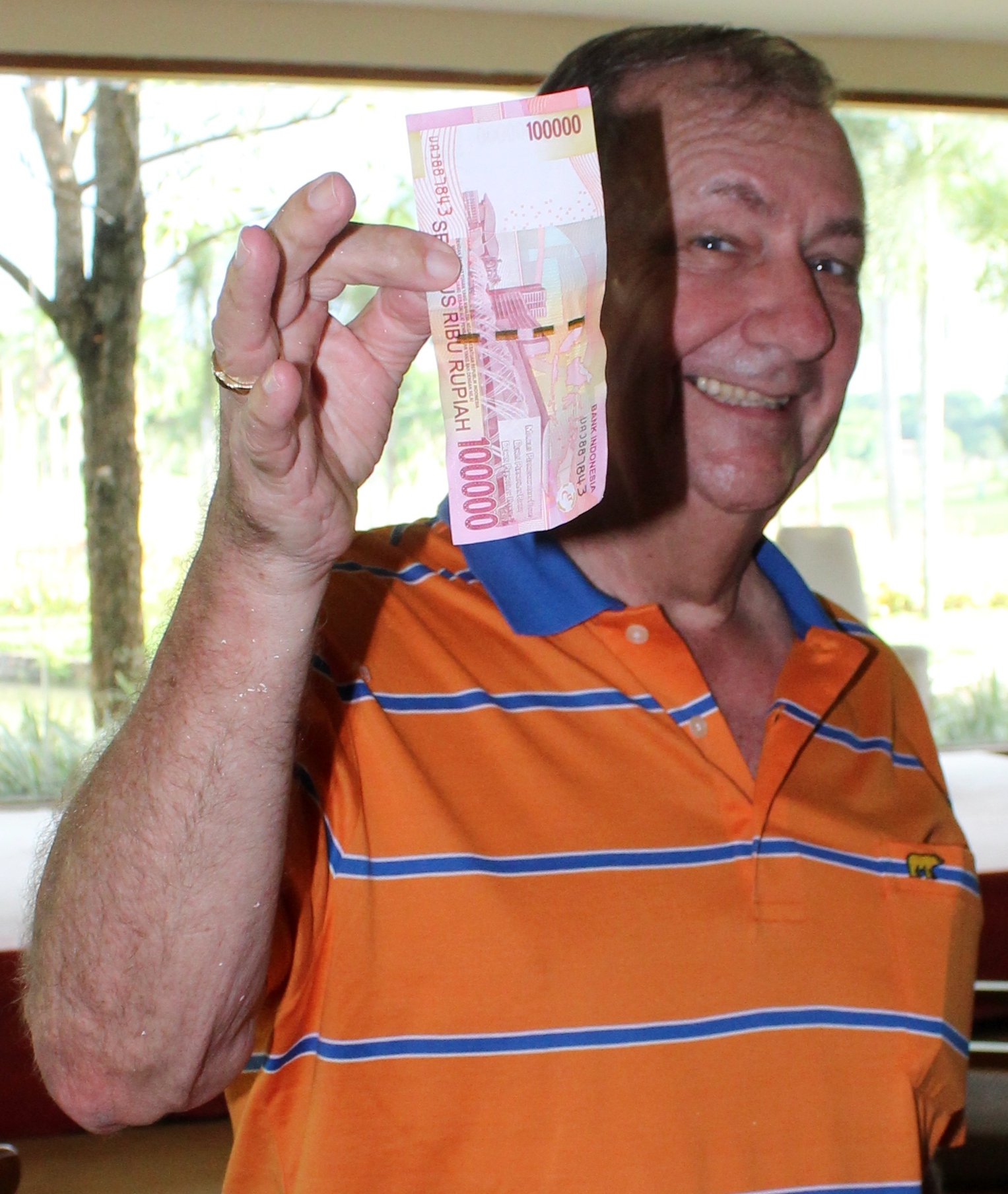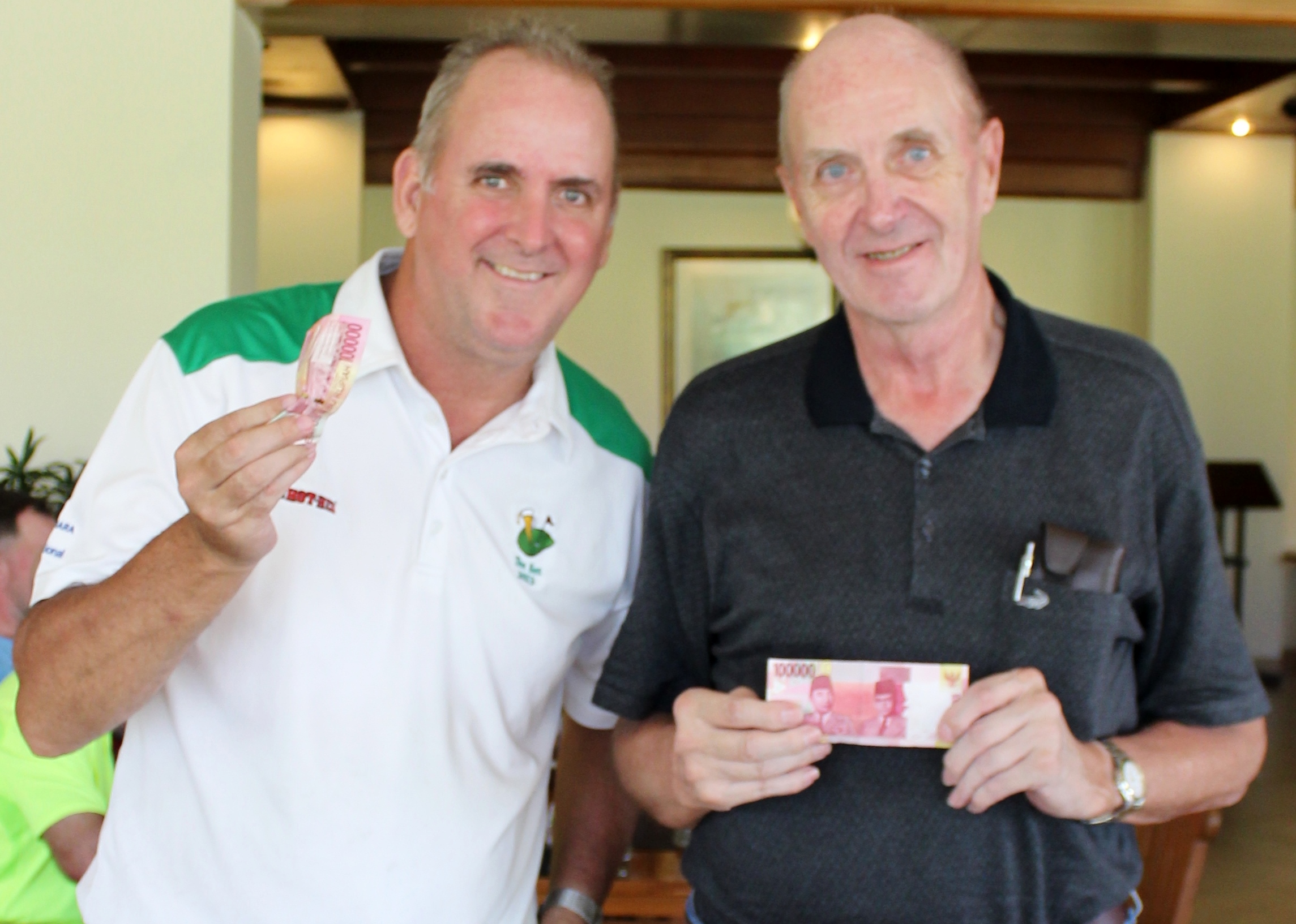 Most Strokes went to Ivan Byriel for his 11 shots a hole, looking perplexed at the idea of opening his wallet to pay the 50,000 Rp fine.