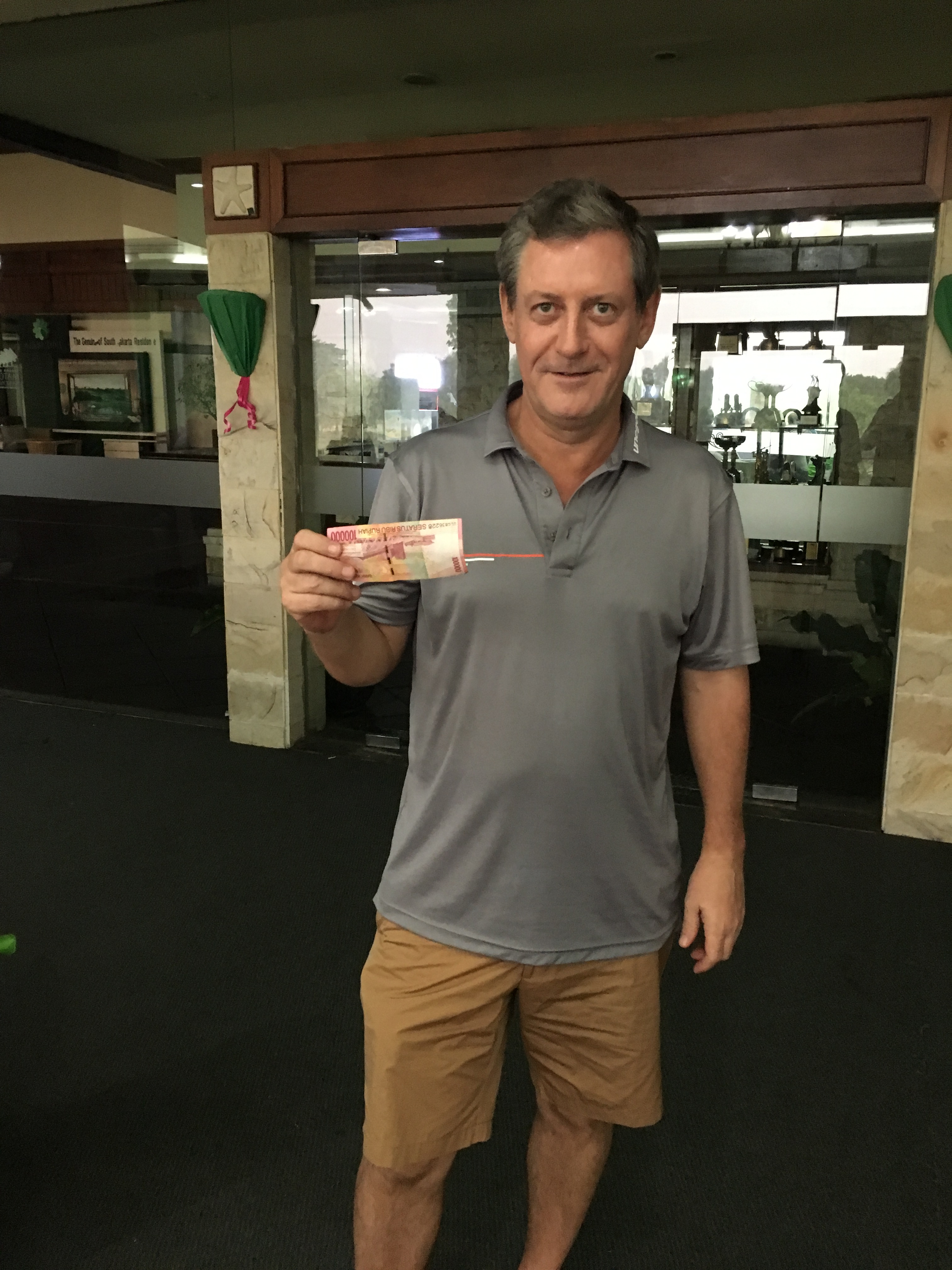 Sunday’s competition at BSD saw us rescheduling the day to Matoa Nasional who as usual were very accommodating and welcomed the 34 Tee Setters who joined the day to enjoy the beautiful sunny weather and the dry, fast fairways. Despite a small competition going on in the afternoon also, we were all finished in good time and enjoying a beer when a small thunderstorm hit as it turned dark and the prize giving was ongoing. The dry conditions on the course led to some very good scores, more of which is reported on below.