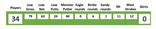 Low Gross was awarded to Stuart Wigley for his Gross 79, a score he shared with Jeff Landau who was awarded First Birdie for his effort on hole 6.