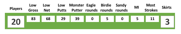 With only 20 players on the day, we managed to capture 75% of them onto the honours board of the day above albeit the number of actual prizes and fines were relatively low making for a fairly short end of day presentation.