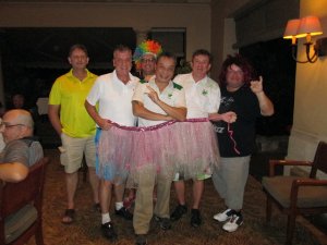 Although hard and fast on the fairways, there were still some long carries from the Blue to the Red tees and so an impressive 8 skirts were recorded on a day. We managed capture most of them in the photo: Jaco Zaayman, Andrew Waite, Pekka Kiviola, Pascal Bekaert, King Tirto and Andrew Abram along with new-comers Markus Veikkola and Mikko Koskivirta.