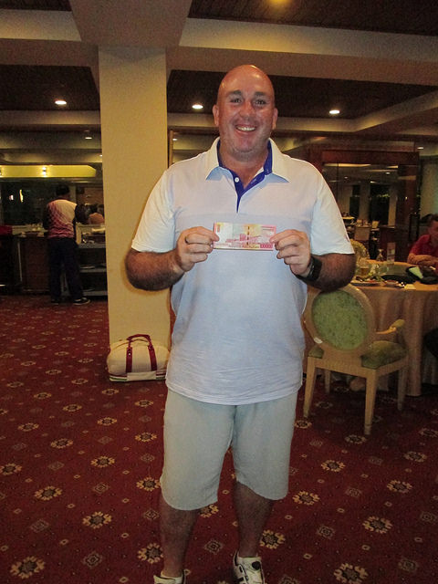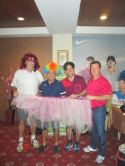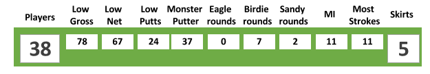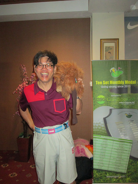 The prize of 1 hour’s free golf lesson went to Andrew Chee for his 117 strokes on the day, compensating his full house of booby prizes which saw him also record Monster Putter (not awarded as less than 40 putts), Most Strokes (11) and a skirt. The skirt was shared with 4 others, Jaco Zaayman, Michael Seabrook, Ronald Dimaculangan and Rudie Basson.