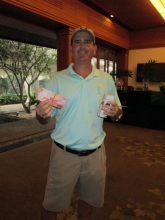 Mick Mongold was Low Putts on the day with an impressive 27 putts on the fast and underlating greens. 1st Birdie was shared by Stuart Wigley and Michael Bartsch for their 1st hole efforts and Divya Prakash Ahuja and President Roger Finnie shared 1st Sandy Par for their hole 7 up & downs. Last but no means least on the skill prizes was John Suermondt who won 1st Par for Handicaps >=30 for his par on hole 14.