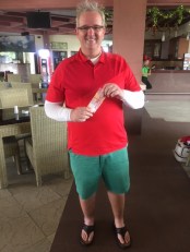 Christmas Eve saw a healthy turnout of 24 Tee Setters getting together at Pangkalan Jati for some christmas cheer and a pleasant walk around the rolling fairways to work up an appetite for the following day. Everyone made an effort to come with a Christmas themed selection of golf attire or accessories and to get the holiday spirit flowing, they were all welcomed with a cup of Bloody Mary supplied by President Roger Finnie.