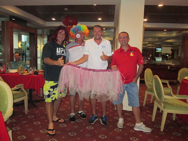 Our usual modest haul of skirts at Modern saw father and son, Matthew and Eric Cherrett joined by VP Bill Lloyd and Andreas Stowoky for the photo as Brandon Curson and Nick Shearman were unfortunately MIA at the time of the prize giving. Brandon therefore also missed his photo with the monkey as Monster Putter but we did capture a mystery shot of the Most Strokes winner, reportedly Joseph D’Cruz for an 11 on one hole.