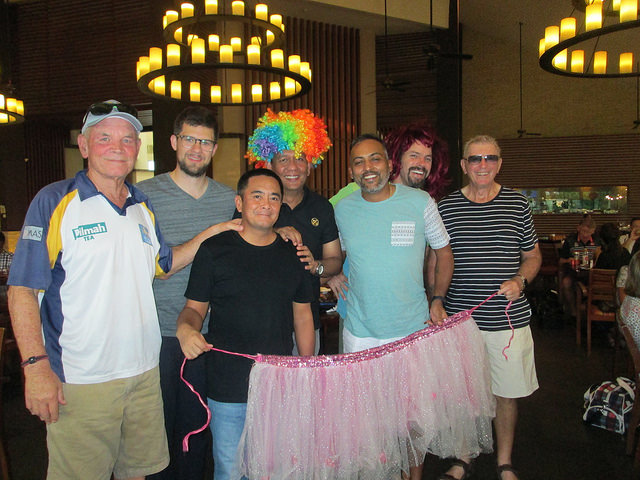 Although benefiting from the 1 fine rule, Geoff Thwaites and Mike Harling remained on deck for their Most Strokes photo for shooting 11 on a hole. The greens at Senayan always play faster than we normally see but Sunday saw 4 Tee Setters getting close to a half century of putts. 3 players tied with 45 putts, but they were out done by our new comer Frans Heuken who needed 49 shots with the flat stick and took home Monster Putter. Getting less value on the greens was President Roger Finnie who only had 29 putts but was rewarded with Low Putts on the day.