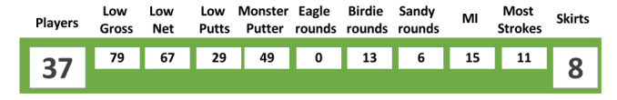 Although not the longest course we play, there are a few longer carries for the men to the ladies tees as well as some visually intimidating tee shots which helps to explain our healthy return of skirts on the day: Amol Singhal, Arthur Mallari, Dan Javier, Geoff Thwaites, Joe Callahan, Matt Otto, Mike Harling and Niclas Roos all getting to share the Tee Set dress up outfits.