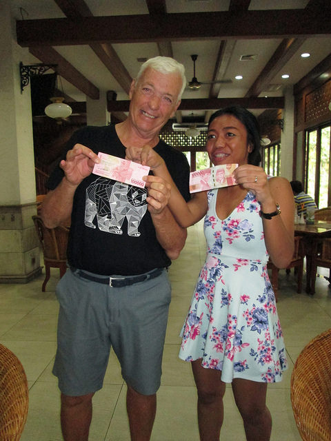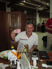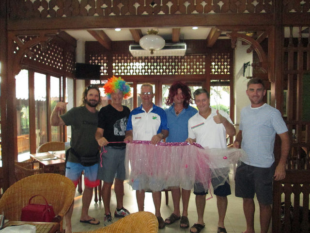 Your score will be counted as the best four 9 hole scores with the Best Net and Best Gross 36 hole scores getting to take home the finest trophy in Jakarta, here modeled by President Roger Finnie who won Best Net last year.