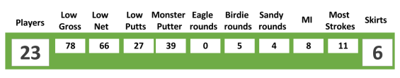 6 skirts were recorded on the day with Craig Binks, David O’Shea, John Suermondt, Kane Griffen, Shaun Dickson and Tom Grace all sharing the Tee Set dress up outfit. No Monster Putter with everyone getting round in under 40 putts but with 11 strokes on a hole, Dede Nielen-Groen was awarded the Monkey.