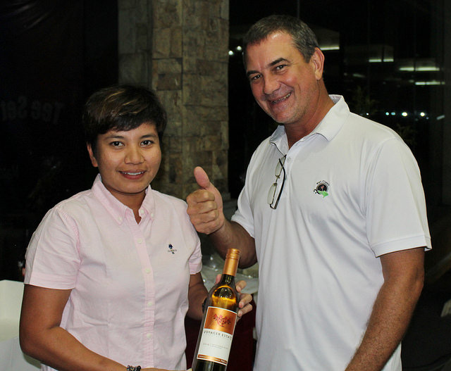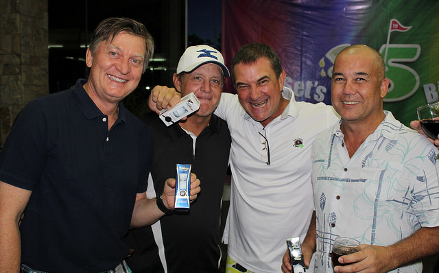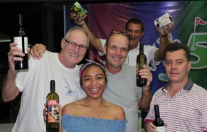 Best Gross on the day with a score of 65 went to Alcoholics Not Anonymous comprising of VP Bill Lloyd, Ken Runyon, Paul Daud and Don Duttlinger. 3rd place on the day was the team of 5, with one of its members having turned up late and slotted in, of Mission Impossible: Wina Nugraha, Efsi Hayati, Lis Wymer, VP Ric Wymer and Albert Arcenas. Second by a whisker was Ball Away: Manfred Borer, Simon Caduff, Stefan Thiele and Gary Mond with the winners being The Internationals: anchored by last year’s runners up Pieter and Dede Nielen-Groen and joined by Axel Hertzke and Jaco Zaayman this year.