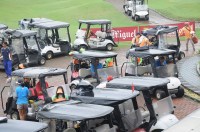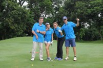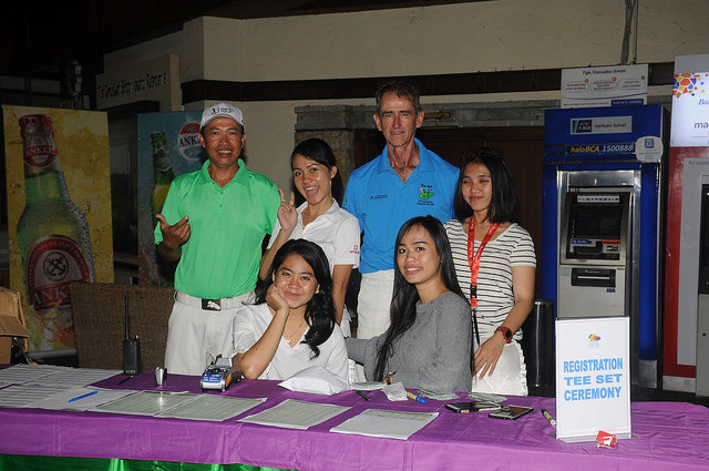 The day itself, saw the course open at 5am and first there were President Roger Finnie, straight from the St Andrew’s Ball held on Saturday night and a more rested James Ross. Upon registration, Mayapada Hospitals were offering a free mini-medical check up which was popular although the results did give some food for thought. Having found lockers, cart partners and starting holes, everybody gathered for breakfast and refreshments. After the photo, we headed down to find our carts and stock up on further refreshments for the course and our shot-gun start.