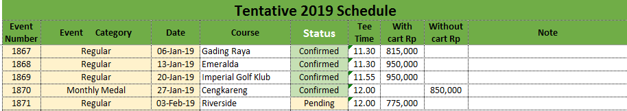A Happy New Year to all Tee Setters and we begin 2019 with a visit to Gading Raya followed by a post round event at The DOCKS where we will be treated to a couple of free barrels in celebration of the New Year and the birthday of Tee Set Match-Play Champion, Jens Roestel.