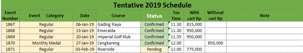 Tee times off 1 & 10 at 11.30am have been confirmed along with the attractive pricing of Rp815,000 with carts.