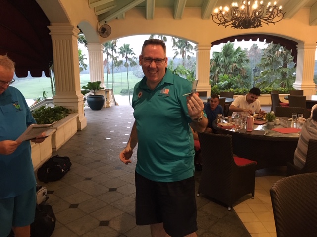 Our early start was fortunate as thunder threatened through most of the round and we had some rain for a few holes; however, the lightening was never close enough for the siren to sound and interrupt the round, much to the frustration of some of the caddies who seemed quite keen to go inside as soon as it started to be wet. It also meant we were finished before the heavens truly opened and drenched the course. The heavy rain played havoc with the traffic on the toll with no less than 5 accidents between junction 19 and Jakarta – some therefore chose to rush off but most chose to use the time to enjoy a couple more refreshments after the prize giving and enjoy a relatively smoother ride home once the main accidents had been cleared.