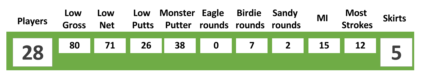 Missing his fine for Most Strokes also meant Matt missed out on his First Birdie prize. Low Putts went to Leon Bivolaru who chipped in twice to record only 26 strokes on the greens. Arne Tjaden recovered his fine with First Sandy on hole 5 as did Pascal Bekaert for his First Par for handicaps >=30 for his effort also on hole 5.