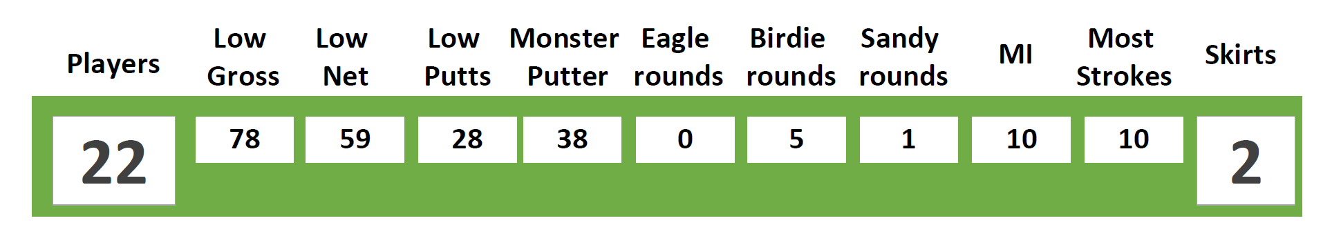 Unusually for Gading, no Monster Putter this week but contributions for 2 skirts from Olivier Herzog and Steve Bowhill and Most Strokes from Bill Lloyd just about kept the Treasurer happy. Olivier however was to recover his fine securing Most Improved on the day.