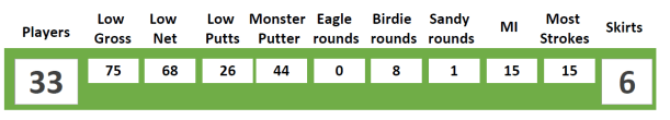 First Par for Handicaps >=30 went to Michael Seabrook whilst Tom Grace took home Most Improved. First Sandy went to Geary Bowles and First Birdie to Andy Vincent. Low Putts was secured by Roger Finnie