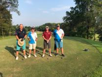An early start for your President to ensure the set up was ready for the arrival of the players saw our sponsors buckets put to good use as collection receptacles in the morning and for their more normal usage during the post match festivities. A team photo before tee off captured the mood and we all headed out on schedule for a smooth and enjoyable round under perfect blue skies.