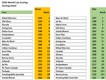 Some excellent scores with 8 players breaking 80 gross on the day, a feast of birdies (26 players) and a lone eagle on the last to Giles Taarland. Many players were at or below their net par with a special mention to Paud Daud (64) and Tribhuvan Singh (65) for their excellent returns and no surprise, these helped their teams to the top 2 placings in the standings.
