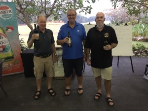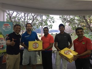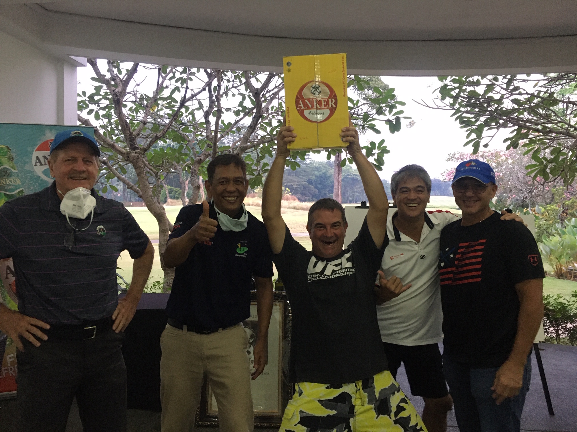 No less surprised than themselves, the winners came from the event organizers with Men at Work (Paud Daud, Craig Edwards, Craig Ewers and a reluctant Aussie for the day, Andy Hyndman) winning the net competition and the Kilted Warriors (Phil Murray, Doug McQuater, Roger Finnie and Peng Siong) winning the gross competition – both by narrow margins.