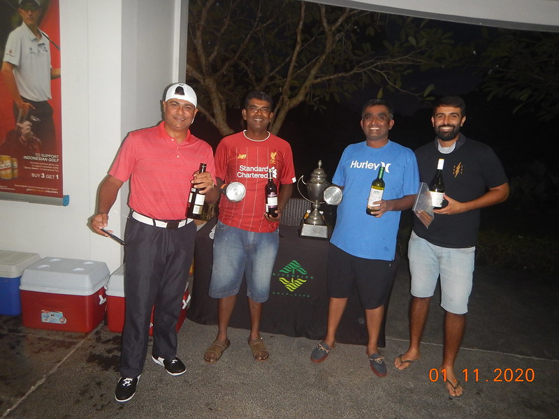 In the scramble, we had some excellent results and winners on the day were the team of Srinivas, Terrance, Indar and Gaurav whilst Fernado/Kees/Jens/Willi pipped Giancarlo/Cecilia/Siti/Zahren for 2nd on a back 9 count-back, the top 2 teams receiving a bottle of wine for their efforts.