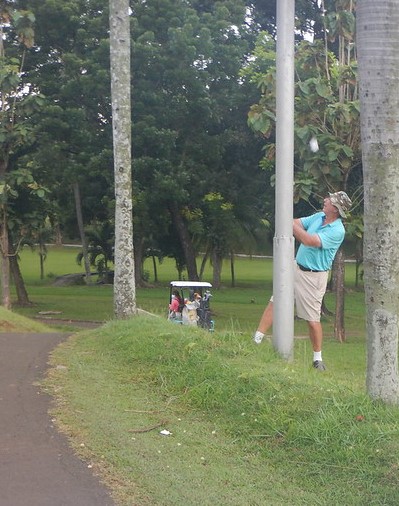 And finally, Tee Set Former President and evergreen, Geoff, has been known to get into some tricky positions in his time, even breaking his back at one stage falling off a communications tower, but he never gives up, as we captured here. Wouldn’t expect anything less !!!!