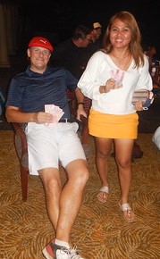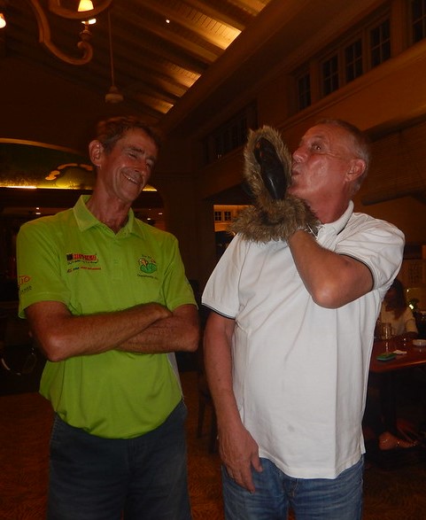 Not to be forgotten, our battlers, including what we feel may approach a record for putts, thanks Dyta, on your first outing, for being such a good sport and getting value for money out of your time on the greens. A very healthy harvest of skirts, four from the same pairing, and Mike taking most strokes, seen here blocking out Ric’s words of encouragement.