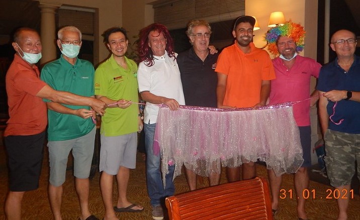There were two official competitions, and lots of side shows, going on. In the eclectic showdown, held to break the tie in the last 2020 eclectic round, Arnold came through to improve his score by 4 shots and add the ugliest of Tee Set’s trophies to his 2020 Matchplay win. Jude collected the 200k that he missed out on last time.