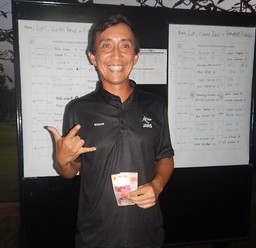 On a date that sounded like a concert sound check….2-1-2-2-1 (sorry band joke), it was a combined Tee Set/Jakarta Inter League round today, with an estimated 80 players competing, 46 officially submitting cards to Tee Set . Big welcome backs to Tapio and Detlef, always great to see you, as well as Sandbagger El Guapo and JAWS tycoons, Divya and Chris. No newcomers today.
