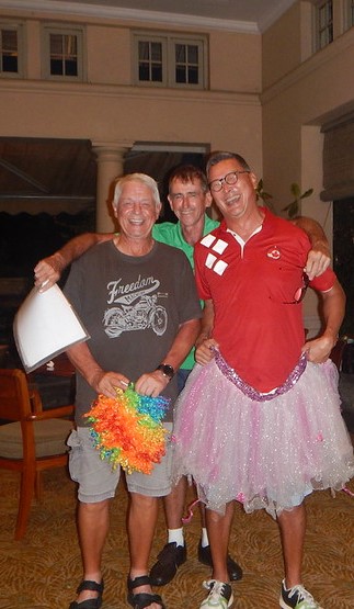 Adrian was in the prizes, winning Low Gross, but is surprisingly missing from the photos. He normally puts on a great show for the camera. Adam took low putts, Dave had first birdie (and a skirt). Jochen had an eagle – just thought we would say that again!! Emil took the cash for first sandy because Ric was already a winner. Skill prize winners – Willy Nearest the Pin, Richie and Lis – Longest Drive