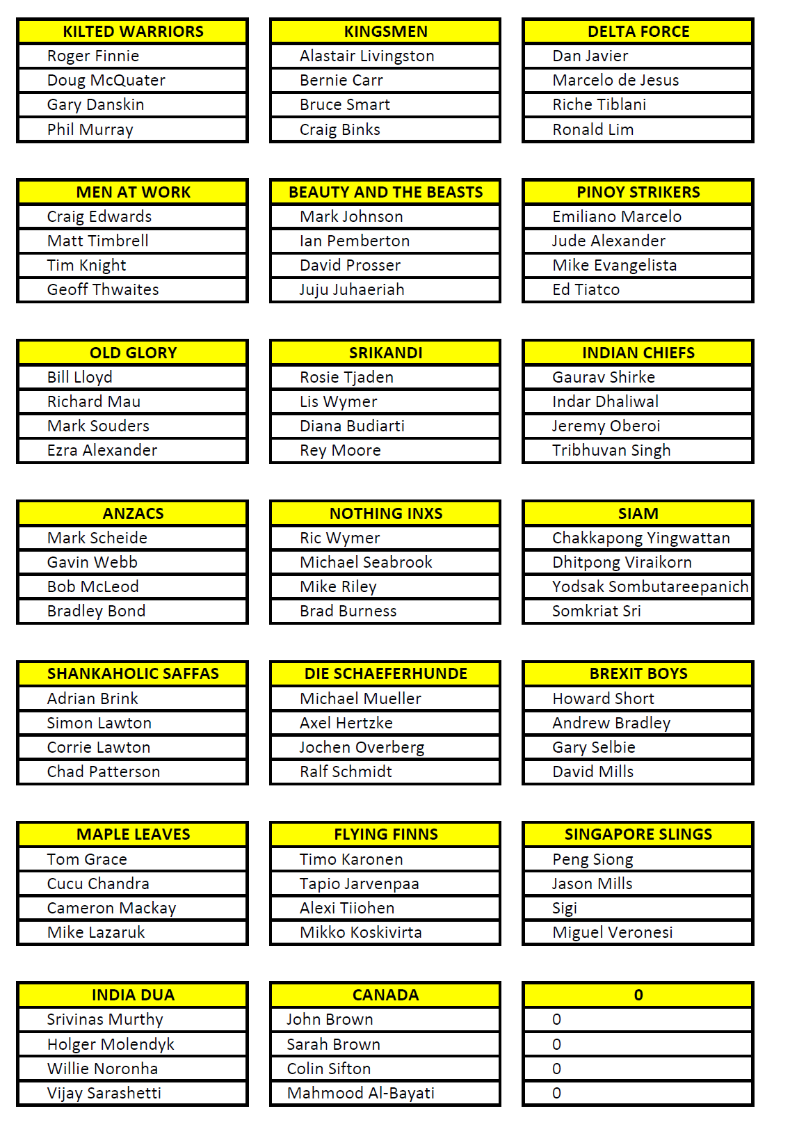The teams are as follows, with at least 14 countries represented – the UK gets confusing these days, so you count as you please. Kudos for the South Africans for finding a name, and some very handy players!!! Use your imagination for Team OOOO – O for orphans, O – for Oh no, I haven’t signed up yet….who cares – if you don’t have a team yet, then this could be for you….sign up here. We won’t be using MyGolf2U this weekend.