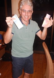 The highlight was of course Ian coming back to the country and to Tee Set after 79 weeks away and bringing back his best golf, a round of 76 (nett 64) to scoop the limited prize pool. It wouldn’t be a post without a smile from Richard, so he’s in and Mike stuck around to pick up B Grade. Diarmuid is featured here “done two ways” – as C Grade winner and as our only skirt, which he wore with style.