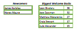 Welcome to Tee Set for James and Honey, and big welcome backs to Leon after 36 weeks, Jaco after 32 weeks, Matthew, Craig and Jude.