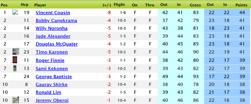 The winner for this week, with an outstanding round of 44 points was Vincent, well done!!