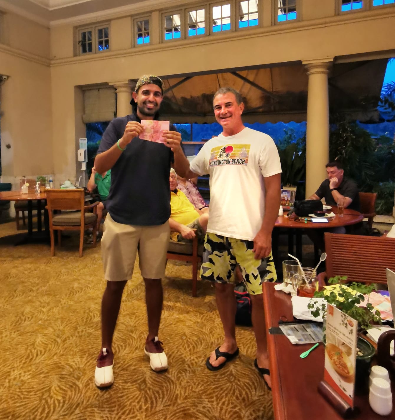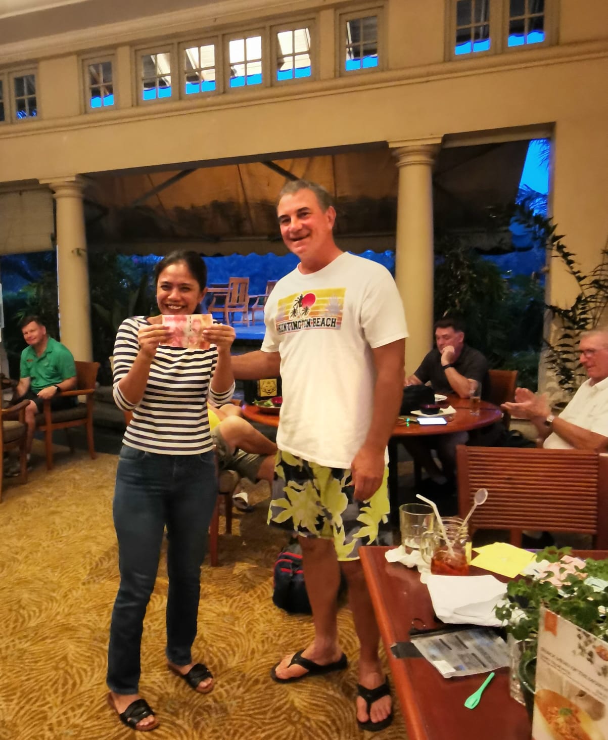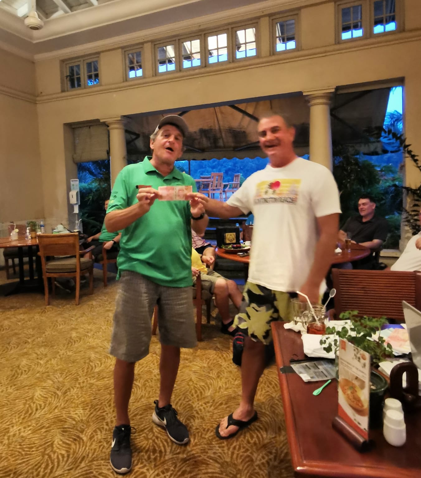 Now, before we move on, players may have noticed that the eagle challenge on Hole 9 was down to a miserly 10 juta Rp. The reason was that Richard’s playing partner during the week, not Richard, took out the jackpot of 200 juta.