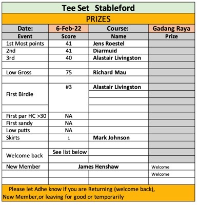 Last years winner GAURAV returned from India to collect his trophy for winning 2021 Bandung Bash. If you have signed up for this year on mygolf2u but not yet booked you hotel room please do it soon as we have a deadline for confirming with the hotel. AMEX gold card was used to book all rooms. WhatsApp Geoff on 0811706237