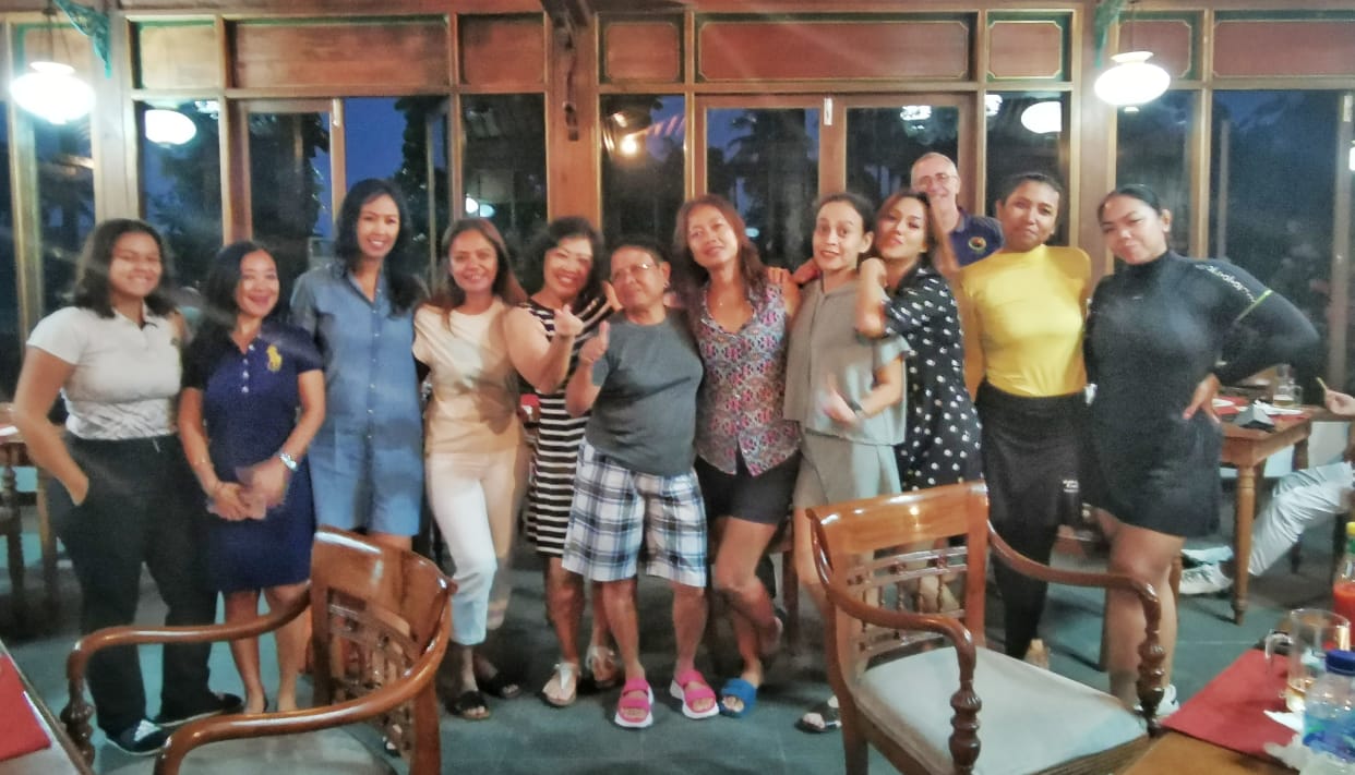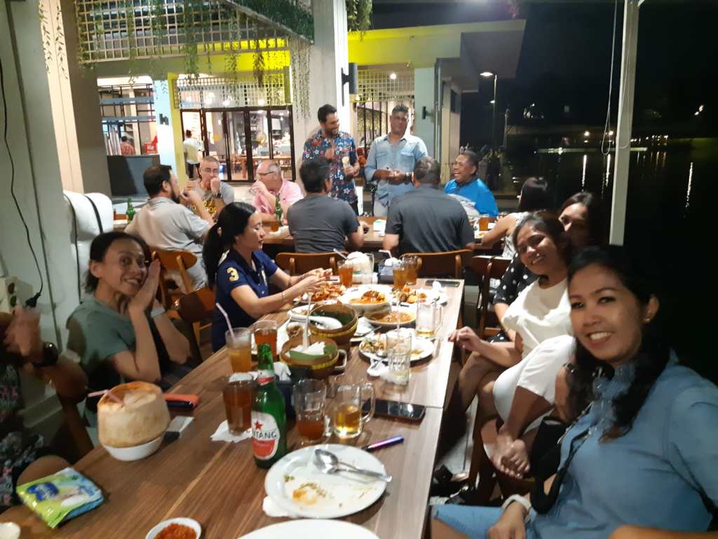 After the rain soaked round Tee Setters joined the Wolfpack for a superb seafood dinner at Telaga Resto just minutes from Kedaton. Live band, great food variety, lively repartee – a super follow-up to golf.