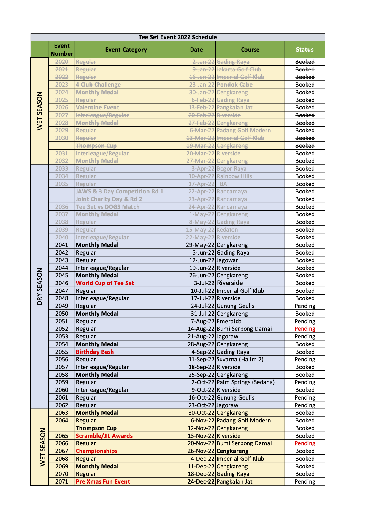 NEXT WEEK: game 2041 Monthly Medal @ Cengkareng.
