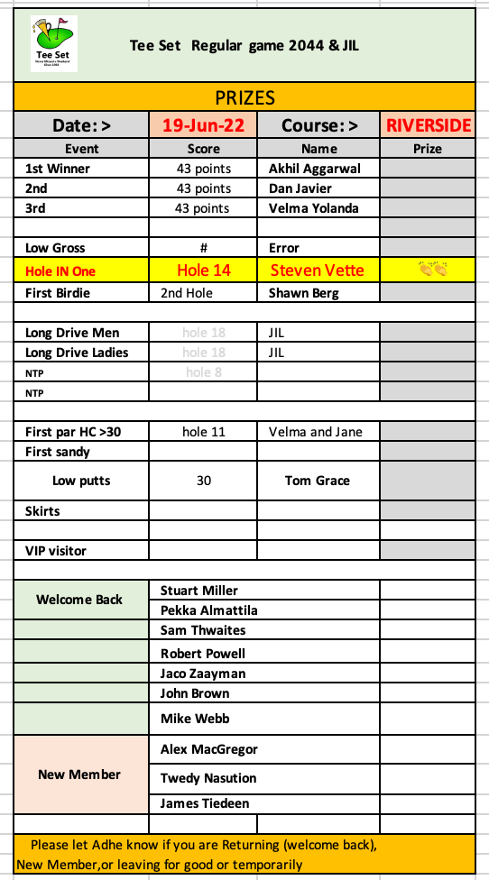 HOLE IN ONE on hole 14 CONGRATULATIONS !!!