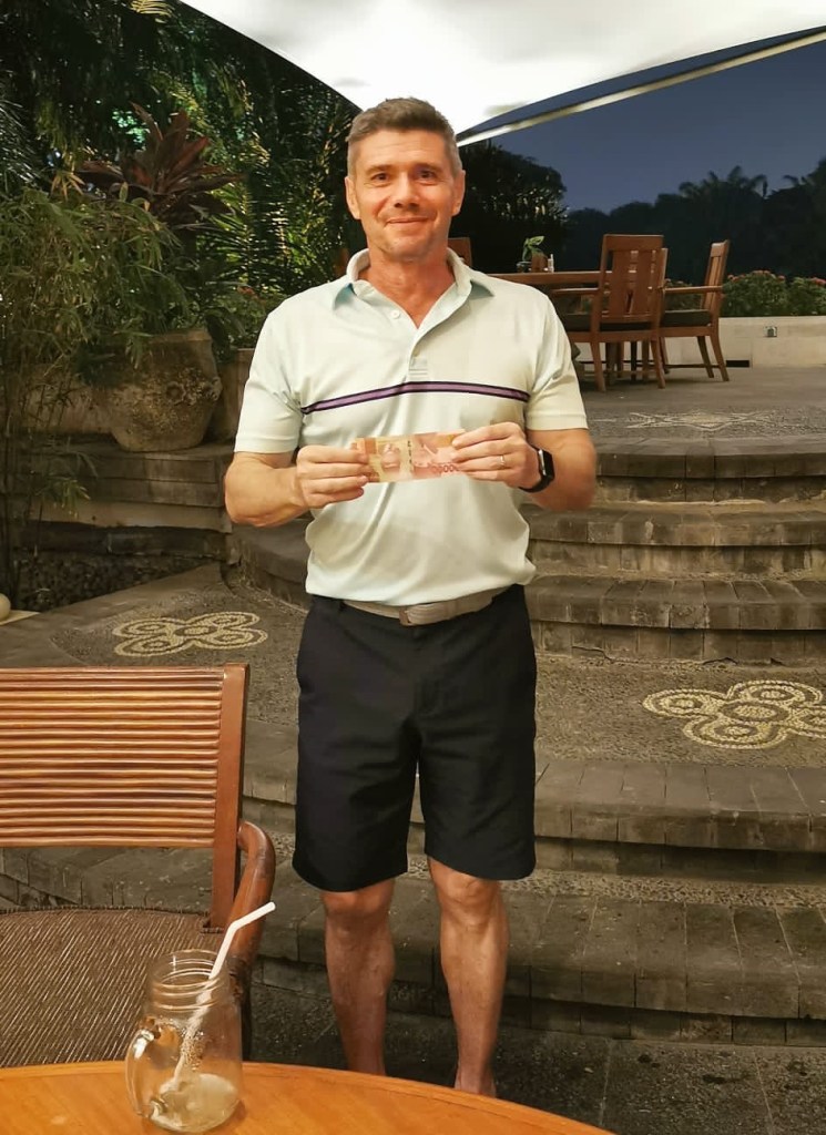 Jeremy hit his second shot to the back of the green on par 5 #1. Okay, been done before. But .. this one was from 260m!!