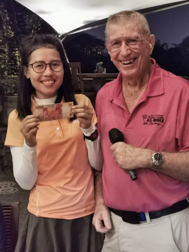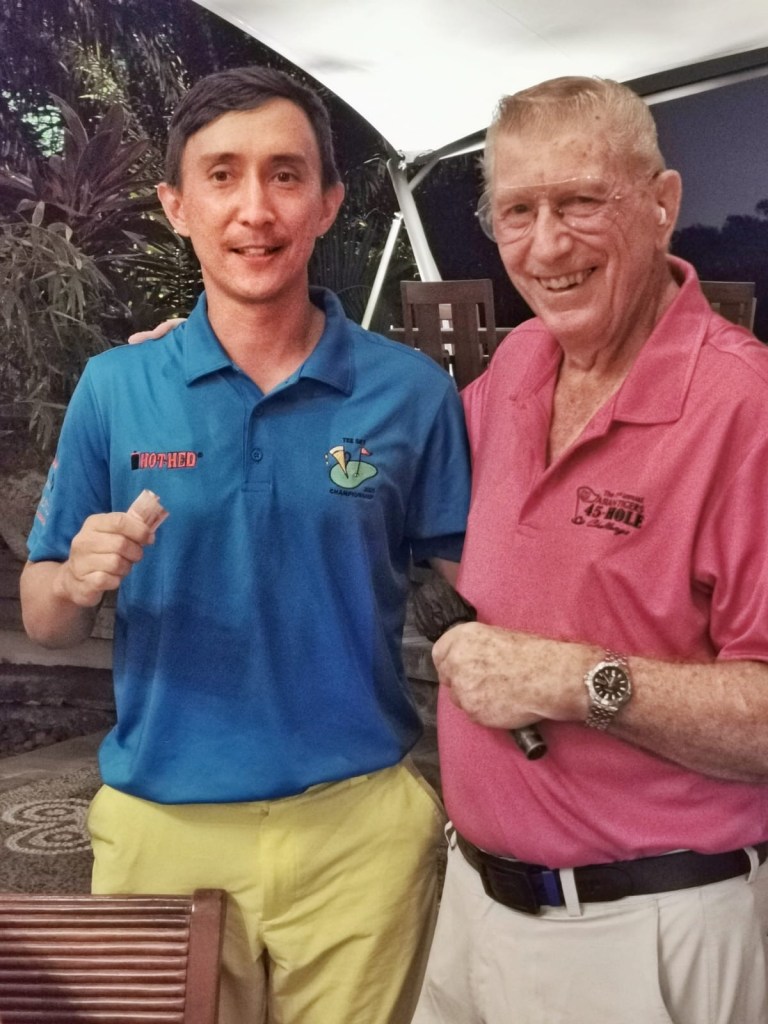 In matchplay Velma beat Dougy 7&5 with an amazing performance of solid driving, great bunker play and close-to-the-hole long putting. On the other hand Dougy’s ball hit every invisible spike mark as most putts didn’t find the cup.