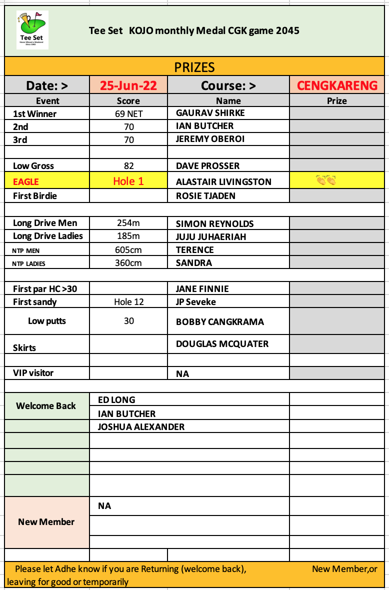 Please check in before 11am so we can get all the bags on the carts in time for the shot gun start at 12:15 There is a fair amount of work for our Admin as well to make this a smooth running event, so please cooperate.