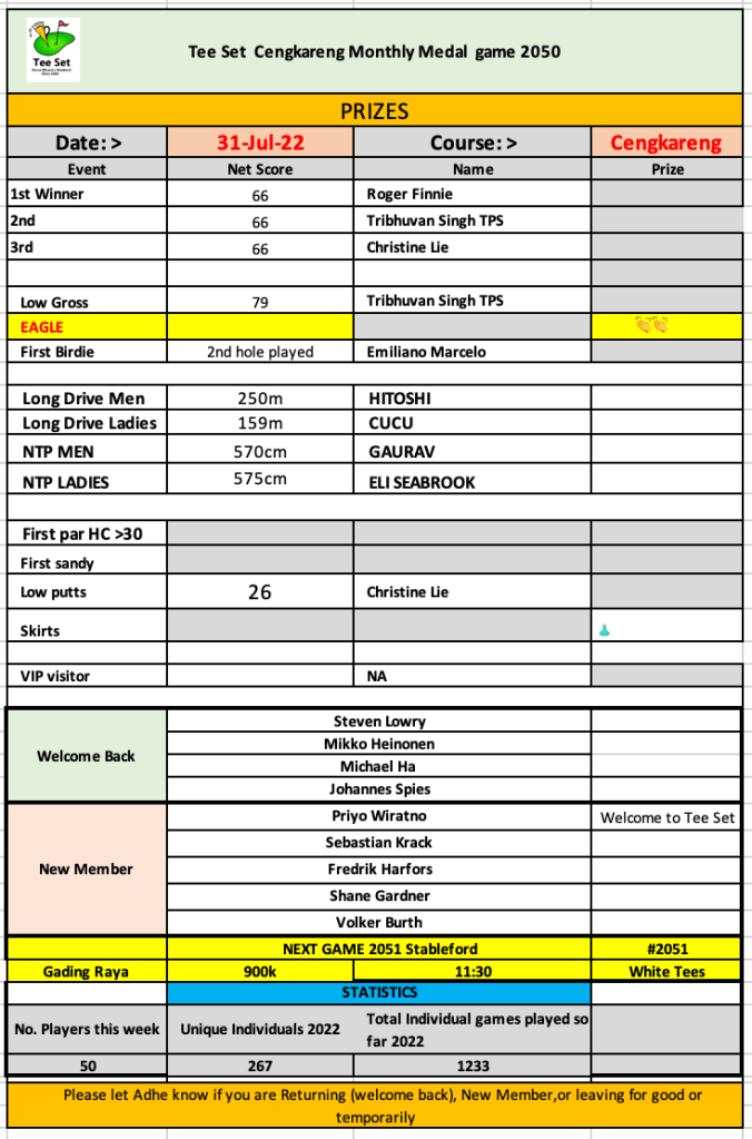 I am very encouraged by the number of players that turned out for this months monthly medal. Thank you all and welcome to our new members.