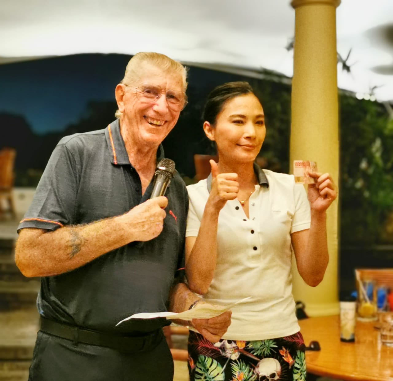 The ladies were notable in numerous ways, to wit: Sri Sollfrank had Max and Andrew shaking their heads with her short game and putting. Christine set the standard for putts and tied for low net. Velma Yolanda shut down Mark in matchplay and cemented her rising star status. Velma’s husband also plays golf.