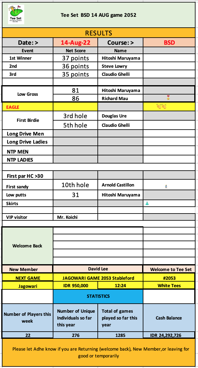Asian Tigers represented by Mr. Bill Lloyd have donated Rp.5 million towards shirts for this year. Thank you Bill and Asian Tigers.