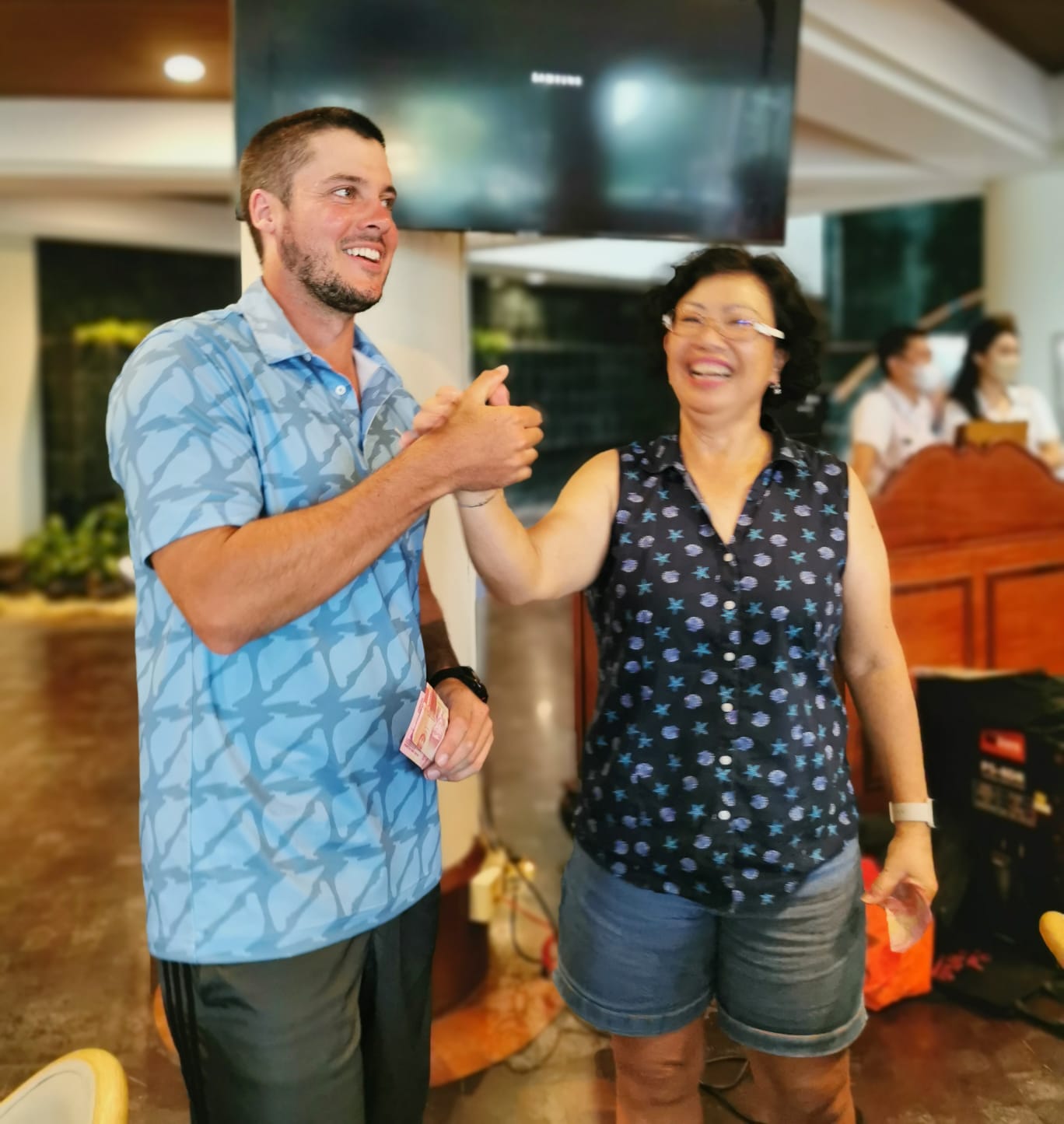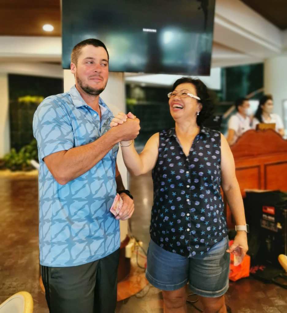 Richard was in a generous mood when, after missing his 1-meter putt on the finishing hole, offered his caddy Rp.200,000 if she could sink it from the same spot. Center cut!