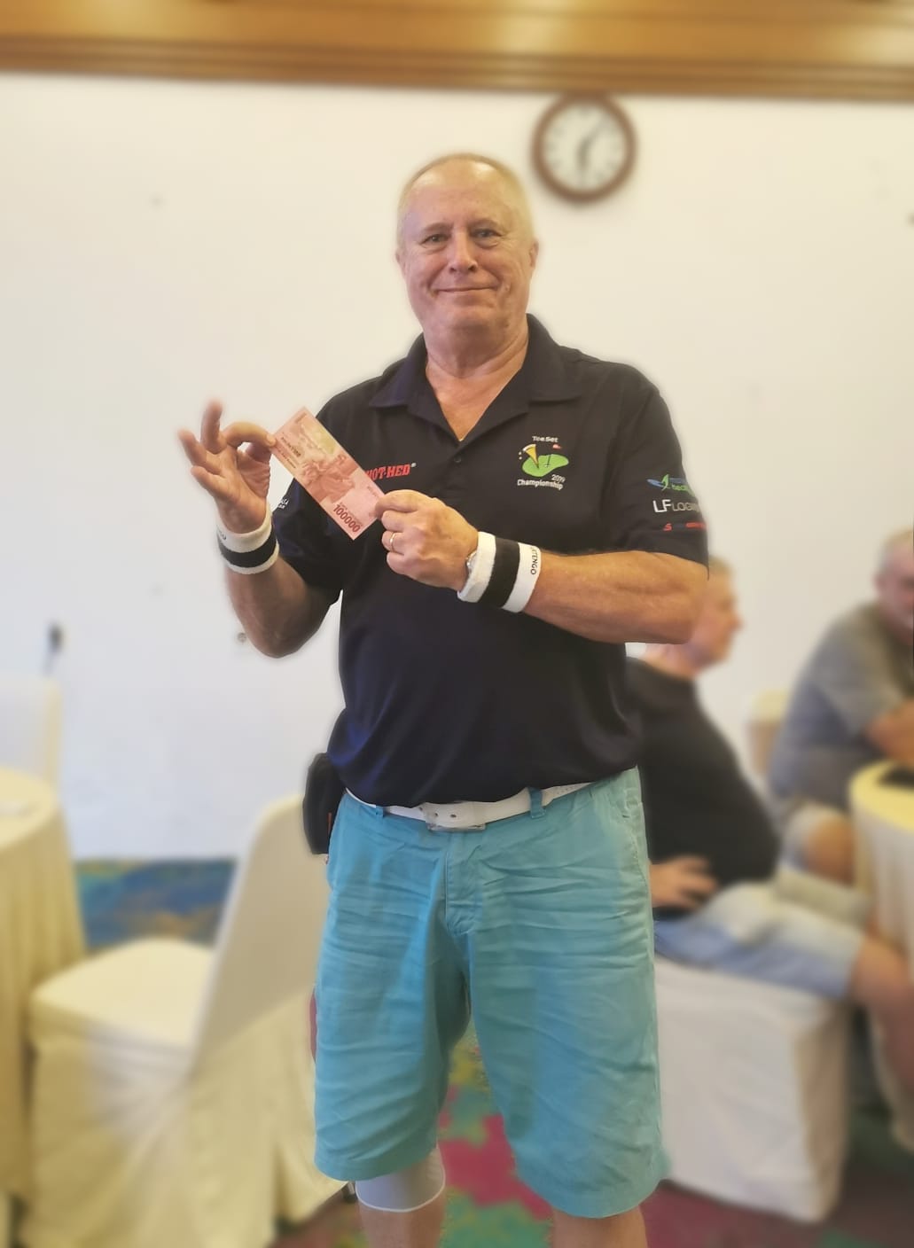 Tapio takes the first birdie cash and best dressed in the clubhouse.